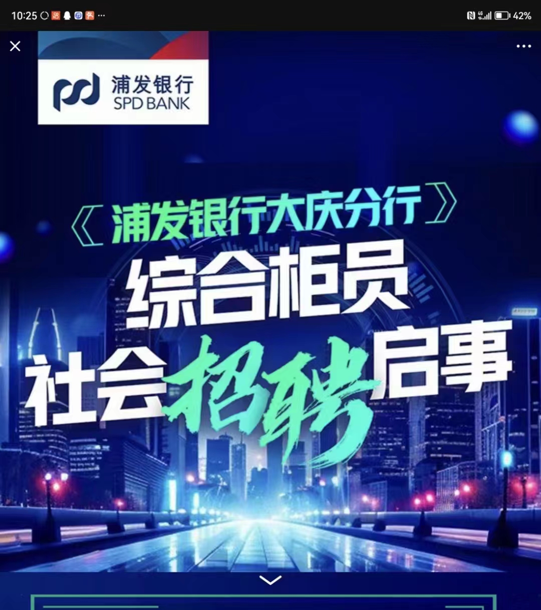 大慶浦發(fā)銀行,柜員崗,要求本科畢業(yè),符合報(bào)名條件速聯(lián)系!