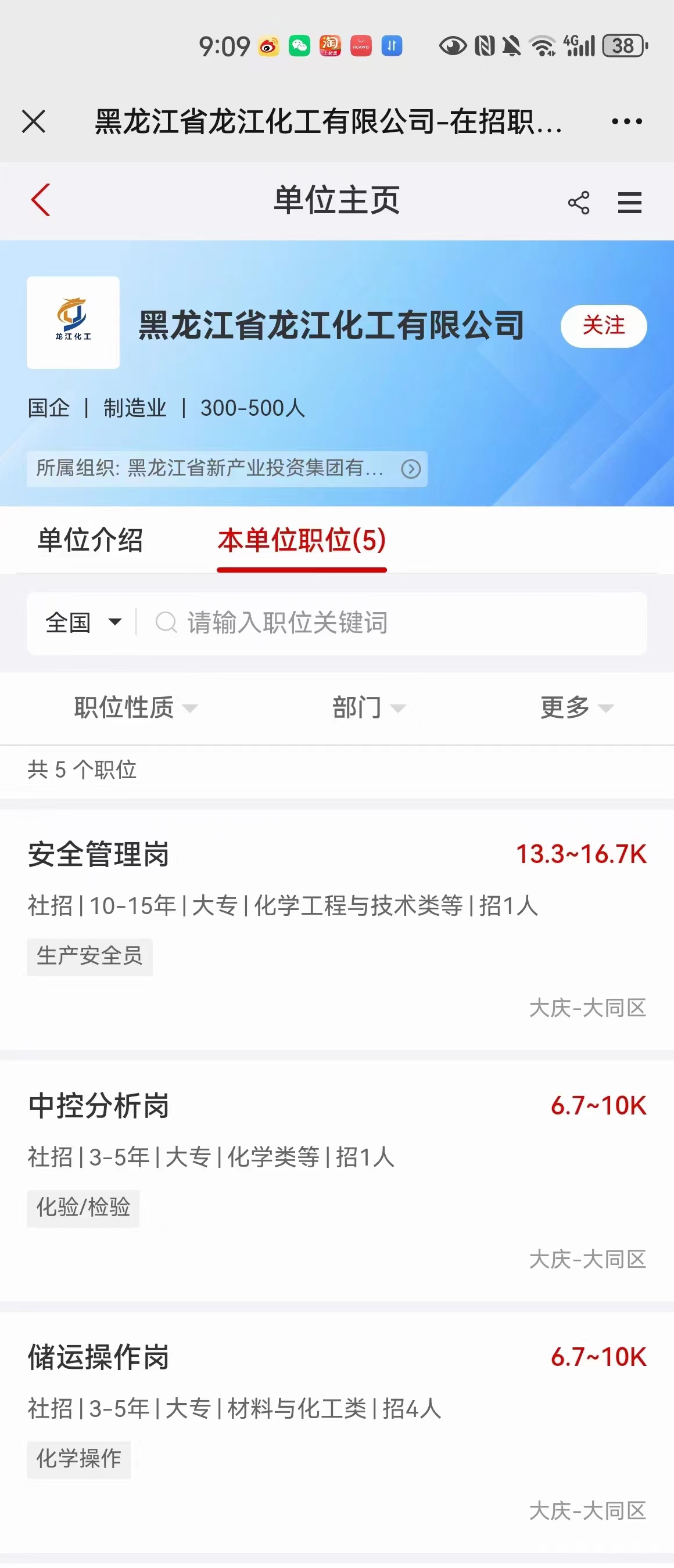 龍江化工,崗位已出,正式直簽!